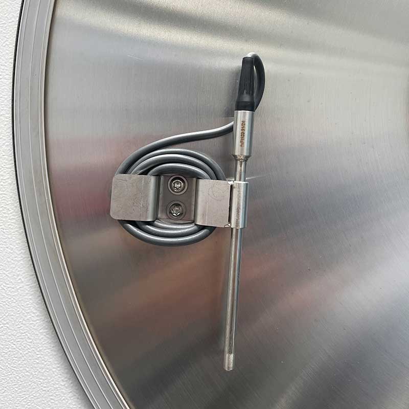 Den integrerade stödtrycksanordningen utökar snabbkylningen (tillval M). Här ledas sterilfiltrerad tryckluft in i kammaren och säkerställer att ingen vätskeförlust kan uppstå under steriliseringen. Kammaren hålls vid ett högre tryck än det tryck som finns i behållarna, vilket effektivt förhindrar förångningsförluster. En extern tryckluftsanslutning måste finnas för detta ändamål.